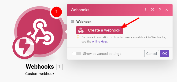 Step 3. Click on Create a webhook and then the Save button to generate a Webhook URL