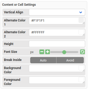 You may also change the Content or Cell settings, such as alternate colors, font size, etc., in the property panel.