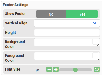 To change the background color, height, and font size of the header, you can update the Footer Settings in the property panel.
