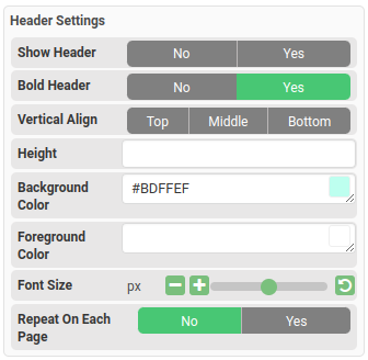 The header of the column, it’s turned on by default. The following is where you configure the header