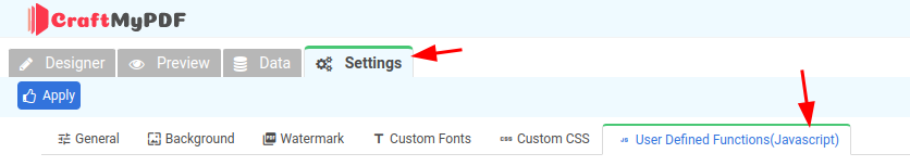 Step 1: Settings → User Defined Functions(Javascript)