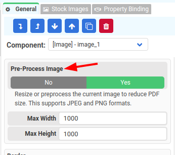 Simply select an image component in the designer, then enable the option Pre-process Image in the property panel and specify the maximum width and height for the images.