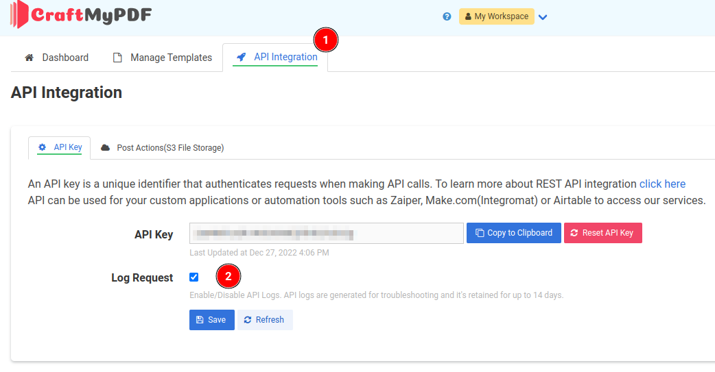 To disable logging for the requests, go to the API Integration tab and uncheck the "Log Request" option.