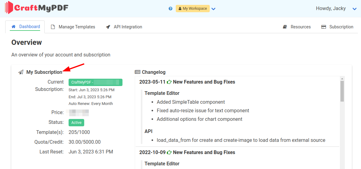 Every subscription plan includes a specific allocation of templates, PDF conversions, and other features. Feel free to explore our pricing page for more details, and you may cancel the subscription anytime.