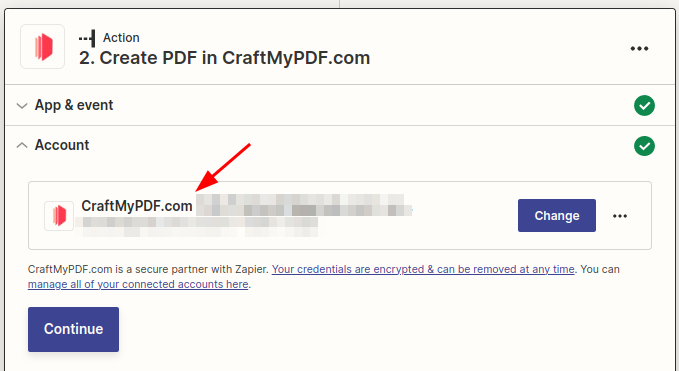 2. Once you've selected the event, you need to link your CraftMyPDF account using the API key.